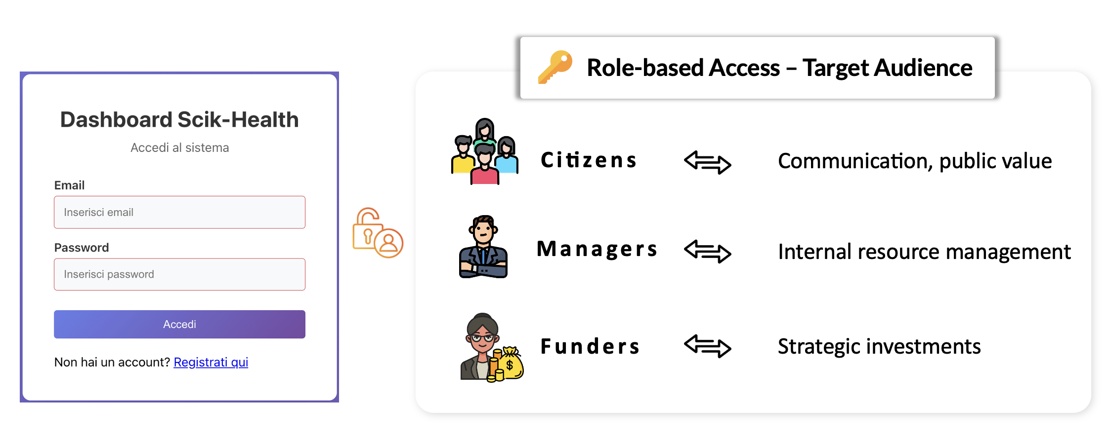 SciK-Health adopts a role-based design philosophy, offering tailored interfaces and functionalities for three primary user groups:
